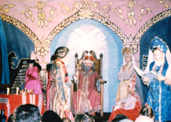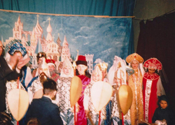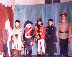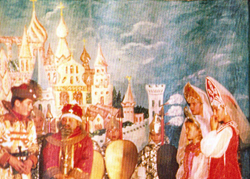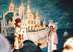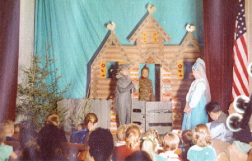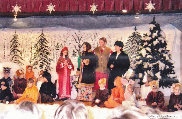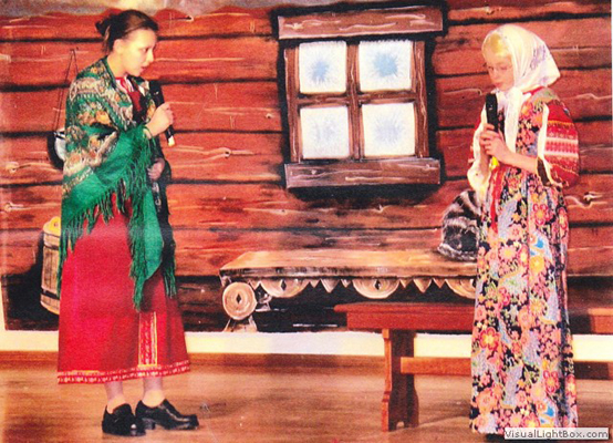 All the decorations and costumes were made by the teachers and the parents. They bought old curtains at Morgan Memorial and from them created Boyar costumes. Many of the more artistic costumes were created by Victor Victorovich Ganson. They are still in our costume wardrobe this day. The beautiful set decorations were created by Irina Pavlovna Beggrova – the daughter of the architect of the Holy Epiphany Church.